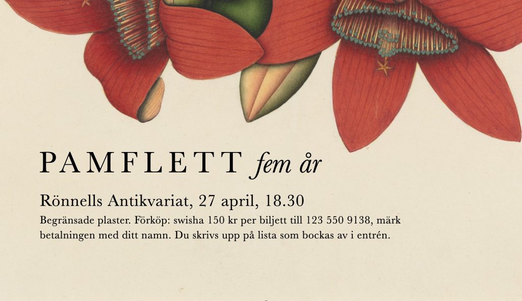 Pamflett förlag bjuder in till ett trefaldigt firande med läsningar, samtal och vin!